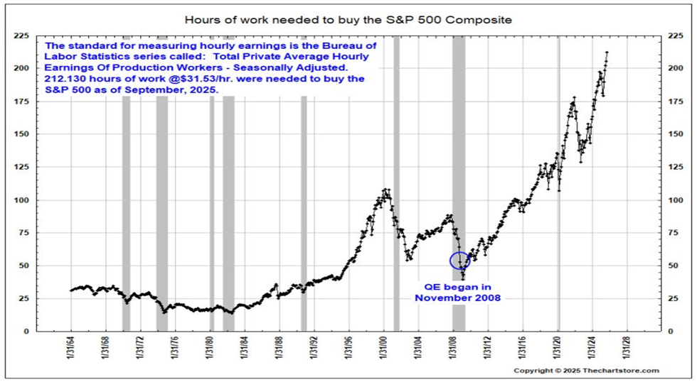 On a personal note, strangely, I don’t think I’ve heard much shared about how unaffordable the stock market is even while its valuation levels are stratospheric. Many other valuation metrics confirm this view, some of which we have shared in 2025.