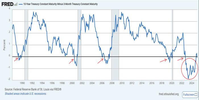 The short of it is we saw a media post offering that the Treasury 3-month yield curve was inverting again. Such an inversion, they shared, was a reliable sign of an incoming recession.