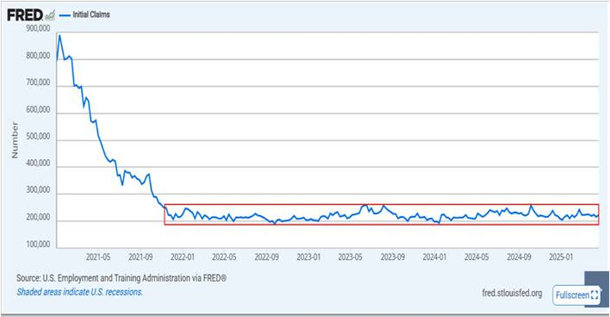 Our red box is meant to highlight the channel that the Initial Claims data has been posting since late 2021. This has displayed a stable storyline since late 2021.
