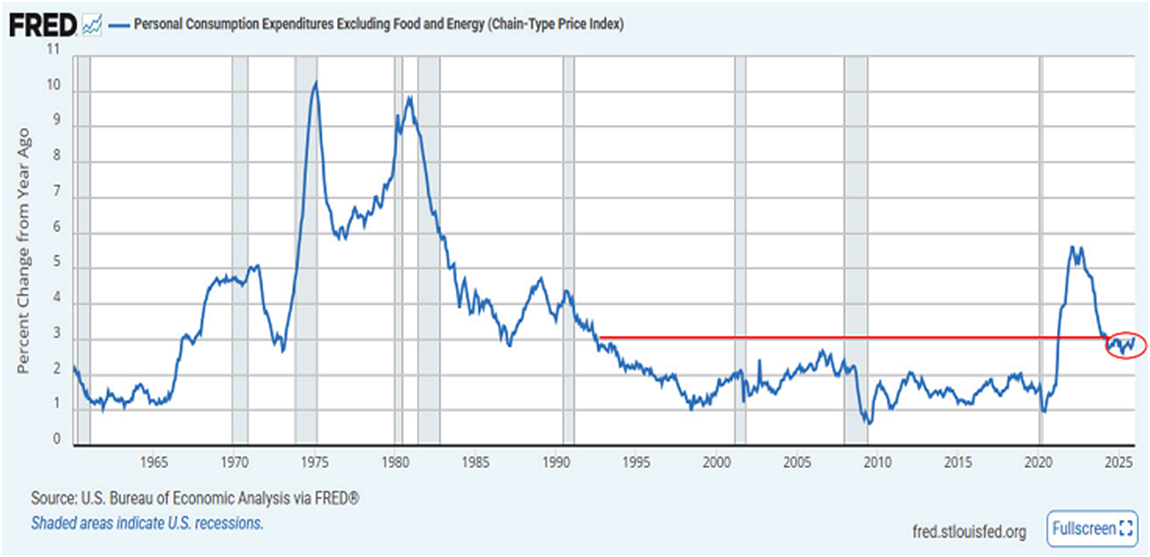 In addition, we have added a red circle to emphasize the more recent behavior. The encircled period dates back to January of 2024 to the current day. Yes, two-plus years of time whereby the growth in this core price index has refused to trend lower, while in recent months it has begun to trend upward again.